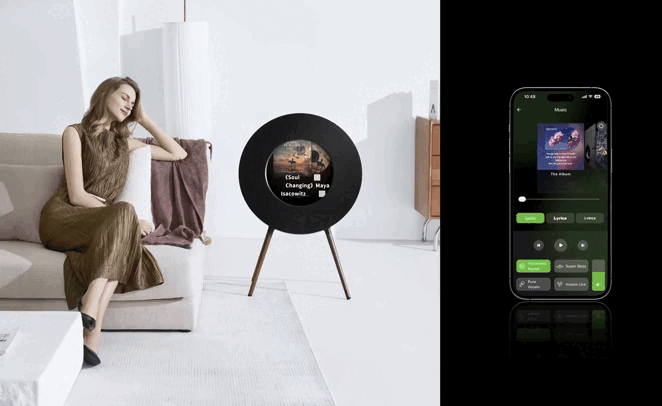 Blending timeless design with modern innovation, the Bluetooth Speaker redefines the way you experience music. At its core is a striking 12.8-inch circular display that visually brings your favorite songs to life — showing real-time album covers, mood-driven lyrics, and elegant timekeeping with customizable clock faces. This isn't just a speaker — it's an artful, ambient experience.